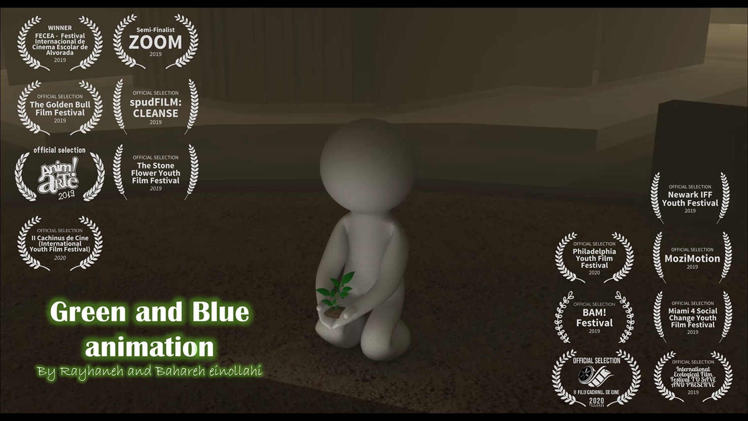 Our first animation, “Green and Blue” (2018), is a 3D environmental short about air pollution, offering simple solutions to this serious problem.